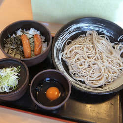カウンターにて、「わかめ」の無料クーポンも渡し、「冷たい蕎麦、生卵で」と、お願いです。
